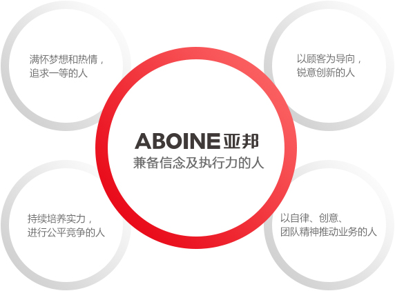 ABOINE亚邦坚持“企业竞争力的基础是人”的哲学,对培养核心人才付出全方位的努力。